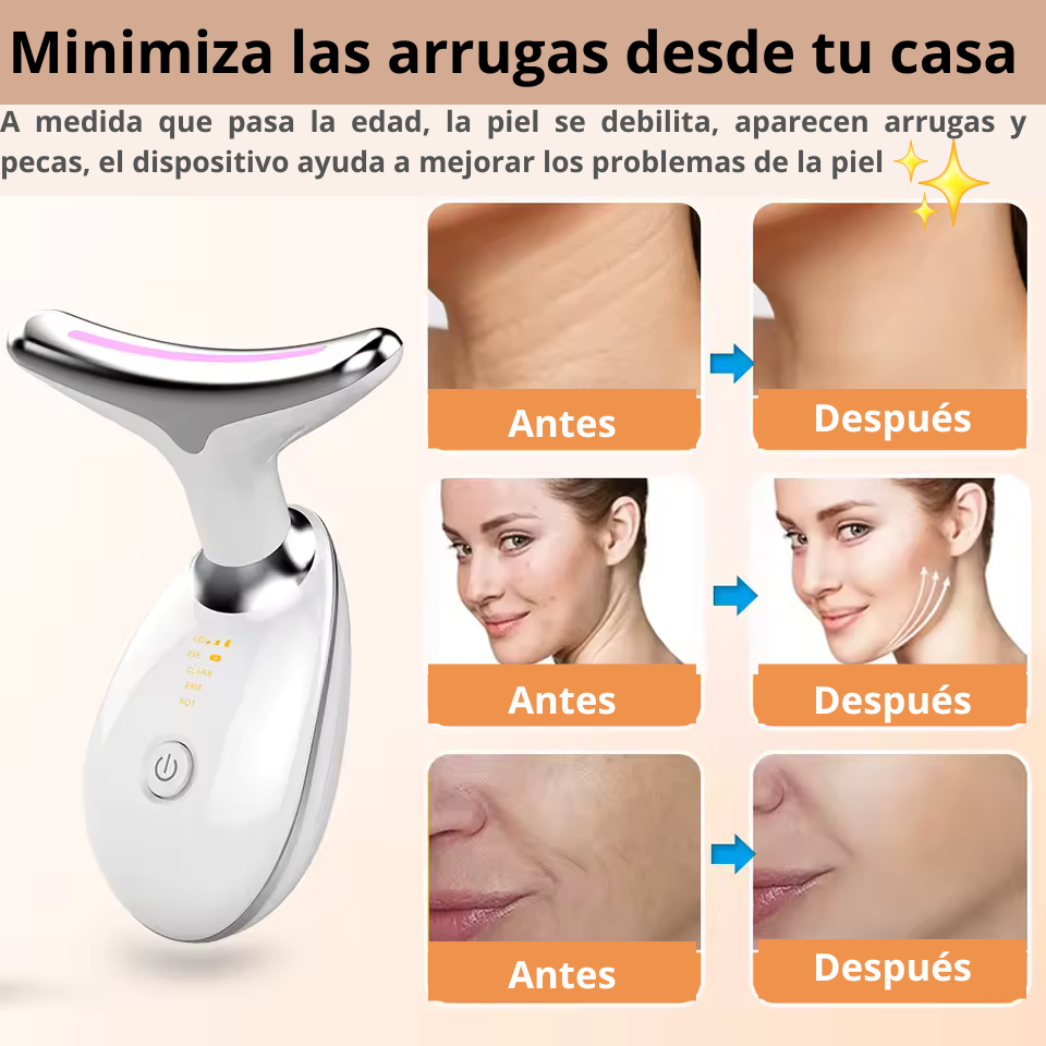 Ideal para uso diario, este dispositivo combina masaje, termoterapia y fototerapia para mejorar la circulación, promover la producción de colágeno y reducir la acumulación de grasa en el área del mentón.